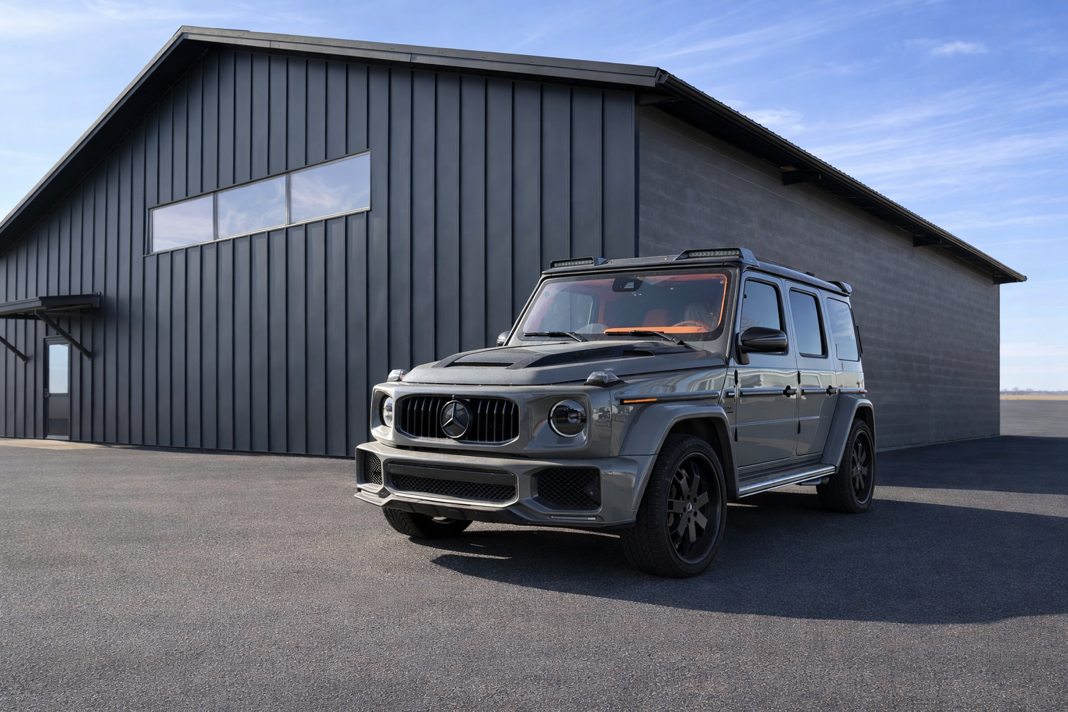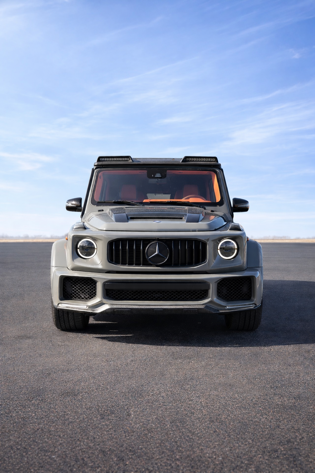 Rent a fully customized 2023 Mercedes AMG G63 Widebody SUV from Above All Rental — available across Northern Utah, Southern Utah, Idaho, and the Intermountain West. Finished in aggressive Nardo Grey with a full custom orange leather interior, this Brabus-style G-Wagon features a complete widebody kit, exposed carbon fiber components, oversized 24" wheels, and 315-wide performance tires for an unmatched luxury and performance presence.
