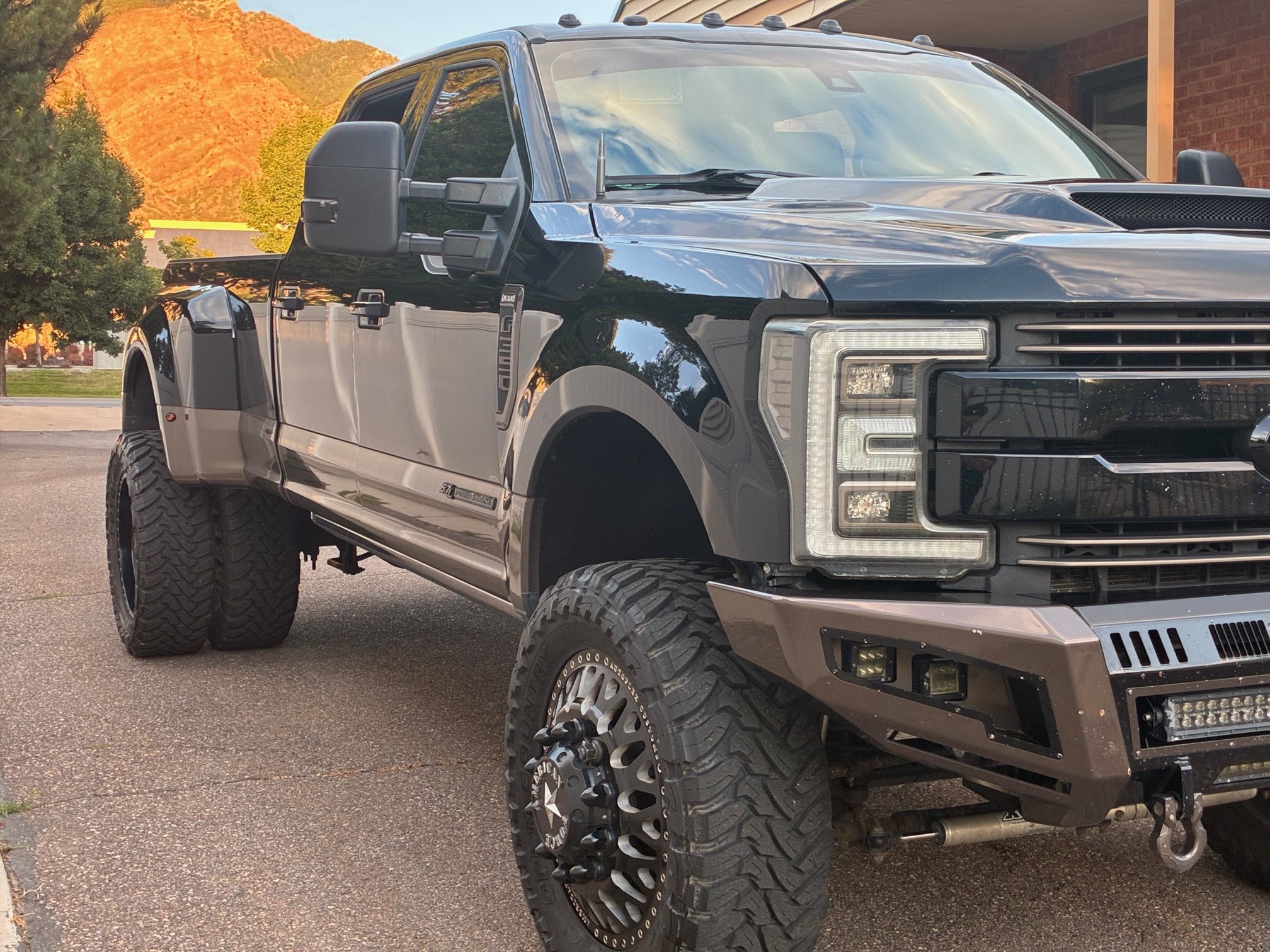 This F-350 isn’t just lifted — it’s engineered for performance and presence. The Carli suspension and steering upgrades provide a smooth, confident ride despite its aggressive stance, while the dually configuration offers added stability for heavy loads and towing support.